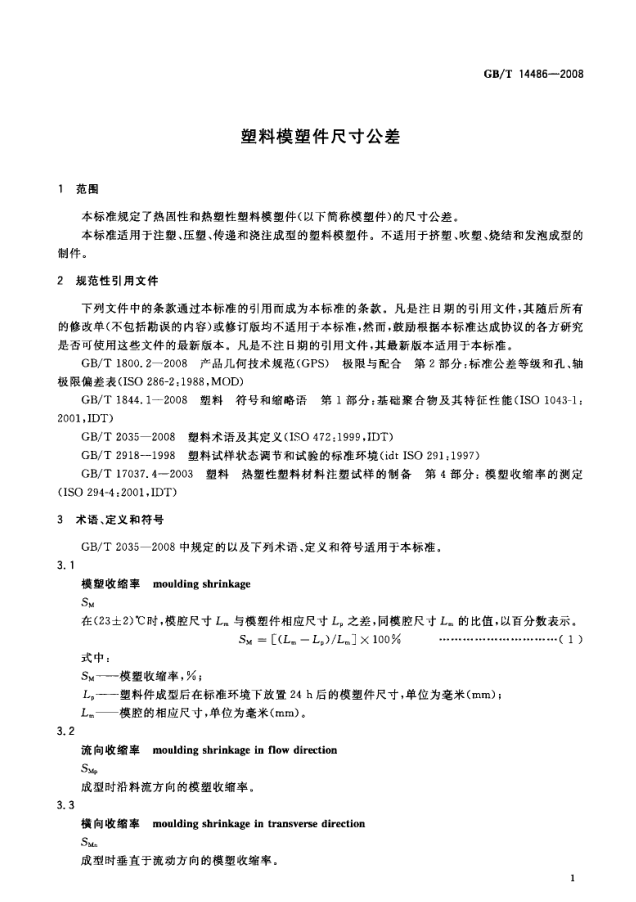 【国家标准】GBT14486-2008塑料模塑件尺寸公差标准